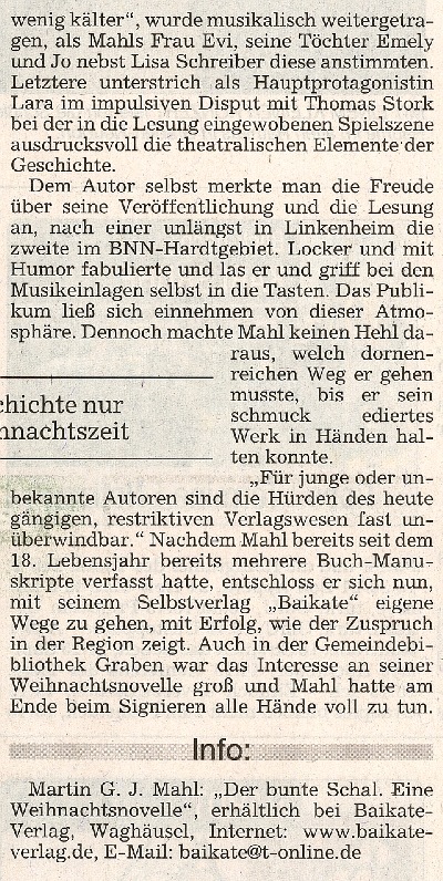 Bericht der BNN (HARDT) am 29.11.2010 zur Buchvorstellung in Graben-Neudorf: